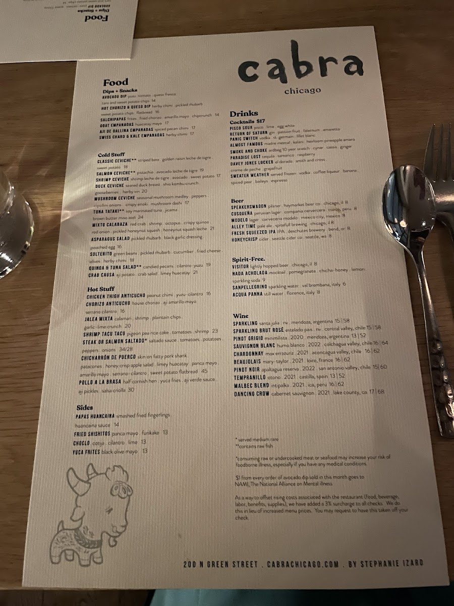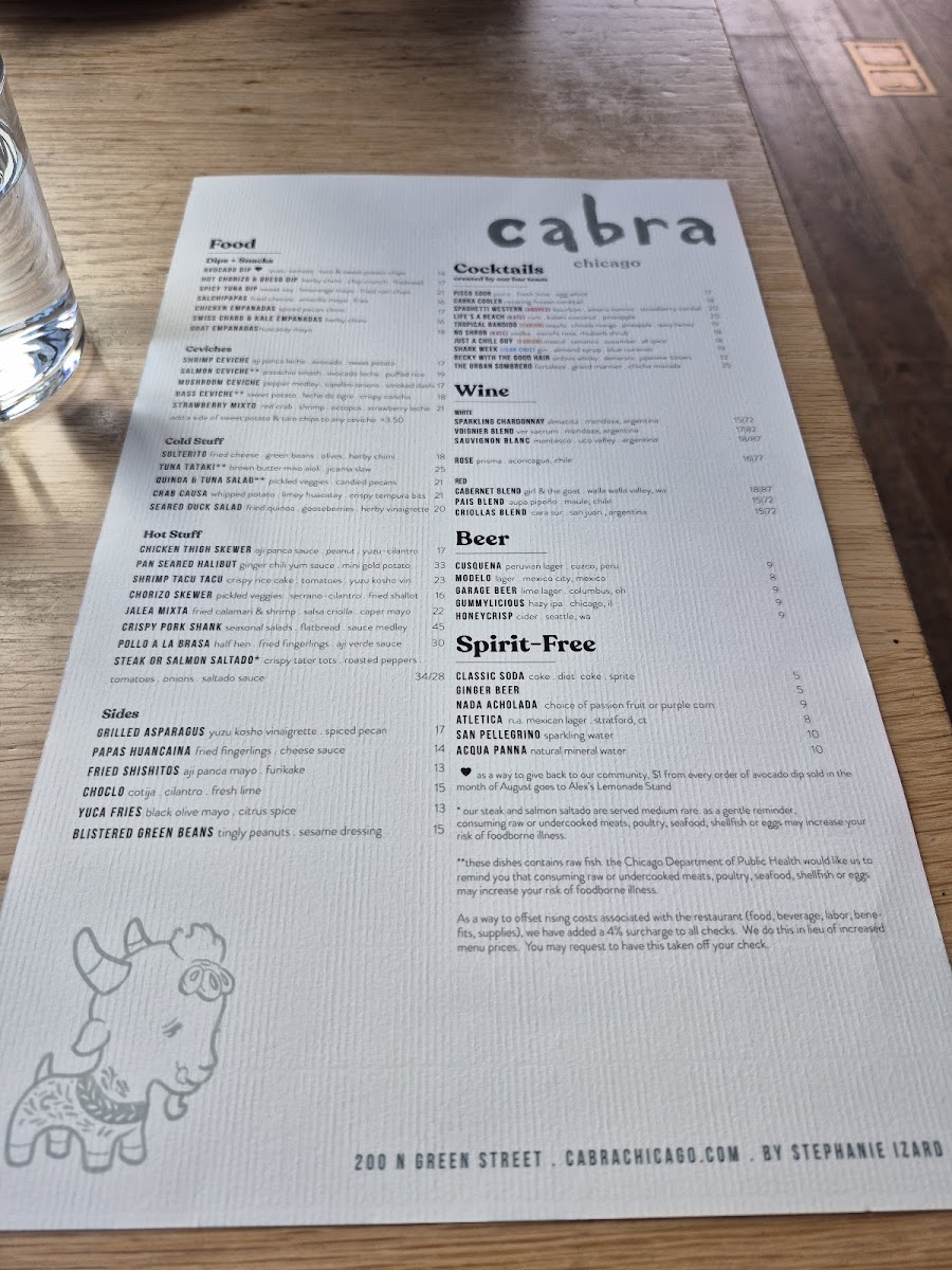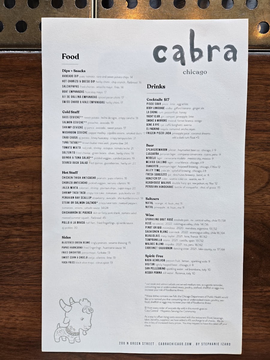 Welcome to Cabra, a vibrant Peruvian restaurant located at 200 N Green St, Chicago. Known for its stunning skyline views and inviting rooftop atmosphere, Cabra offers a unique culinary experience that captures the essence of Peruvian gastronomy with a contemporary twist.